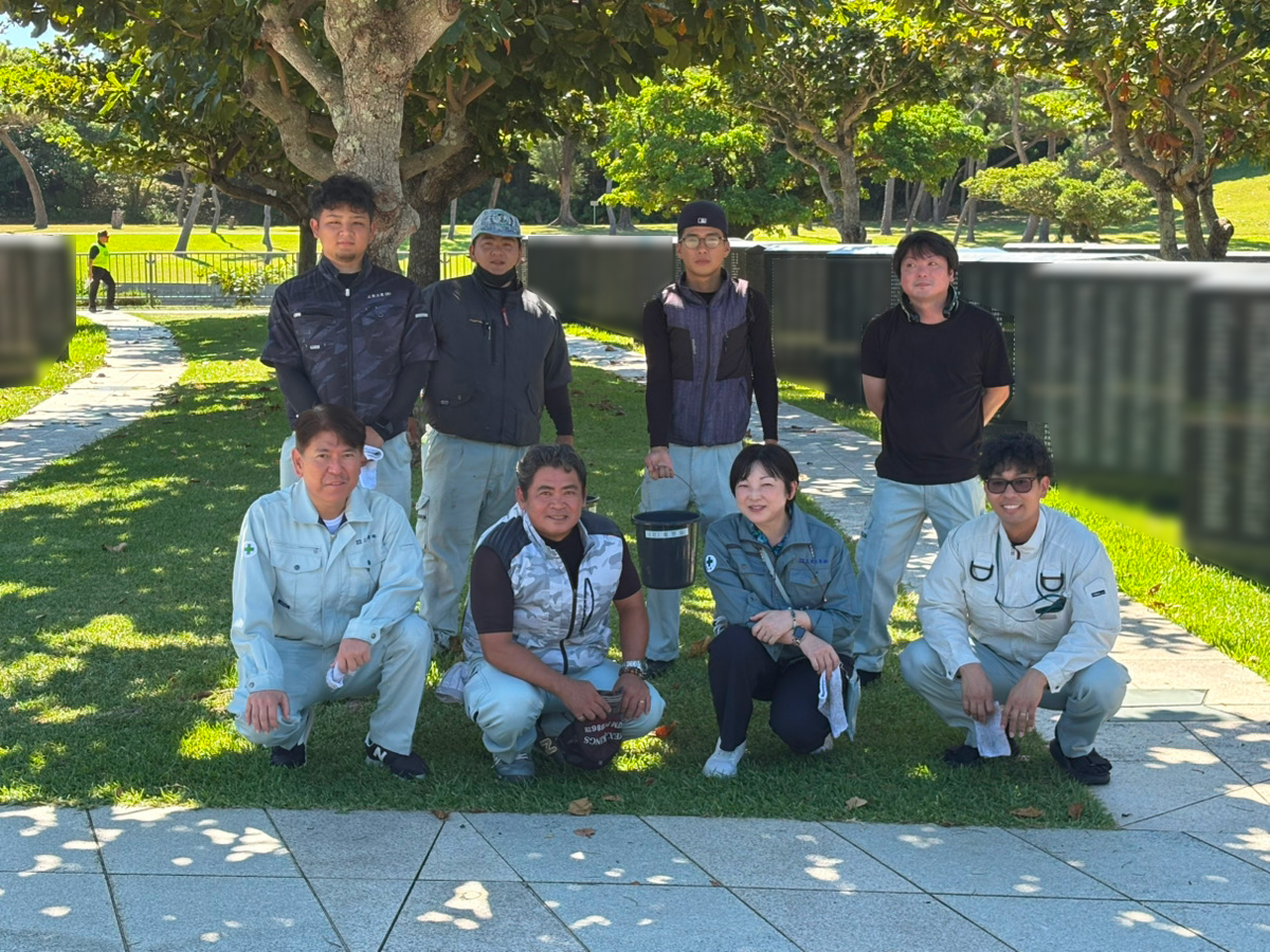 地域社会への貢献活動の一環として、「平和の礎」の刻名板の清掃や周辺のごみ拾いを行い、公園の美化と慰霊の場の維持に協力しました。